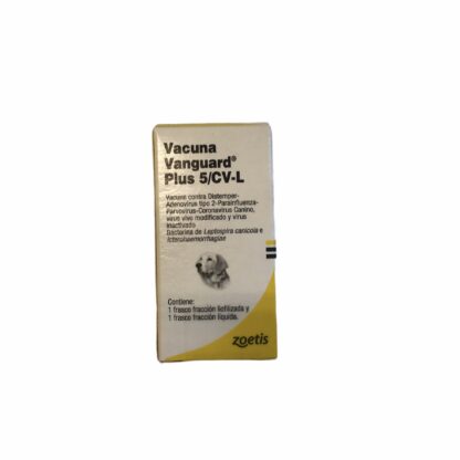 Vanguard® Plus 5/CV-L es para la vacunación de perros sanos de 6 semanas de edad o mayores, como una ayuda en la prevención del Distemper Canino causado por el virus del Distemper Canino, la Hepatitis Infecciosa Canina causada por el Adenovirus Canino Tipo 1, la Enfermedad Respiratoria causada por el Adenovirus Canino Tipo 2, la Parainfluenza Canina causada por el virus de la Parainfluenza Canina, la Enteritis causada por el Coronavirus Canino y el Parvovirus Canino y la Leptospirosis causada por Leptospira canicola y L. icterohaemorrhagiae.